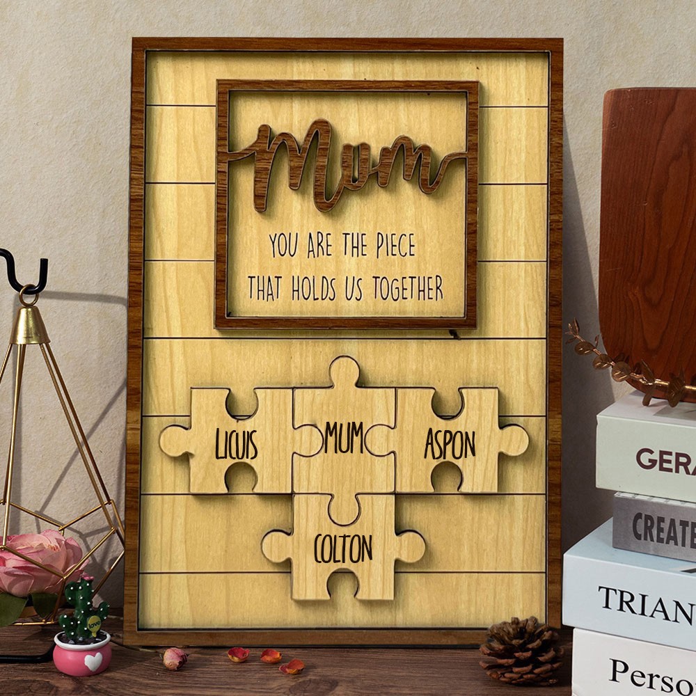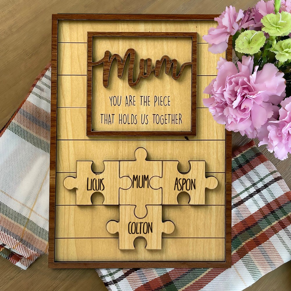 Personalised Mum Wooden Sign With Kids Names Custom Family Puzzle Pieces Sign Unique Gift For Mum Grandma Perfect Mother's Day Gifts