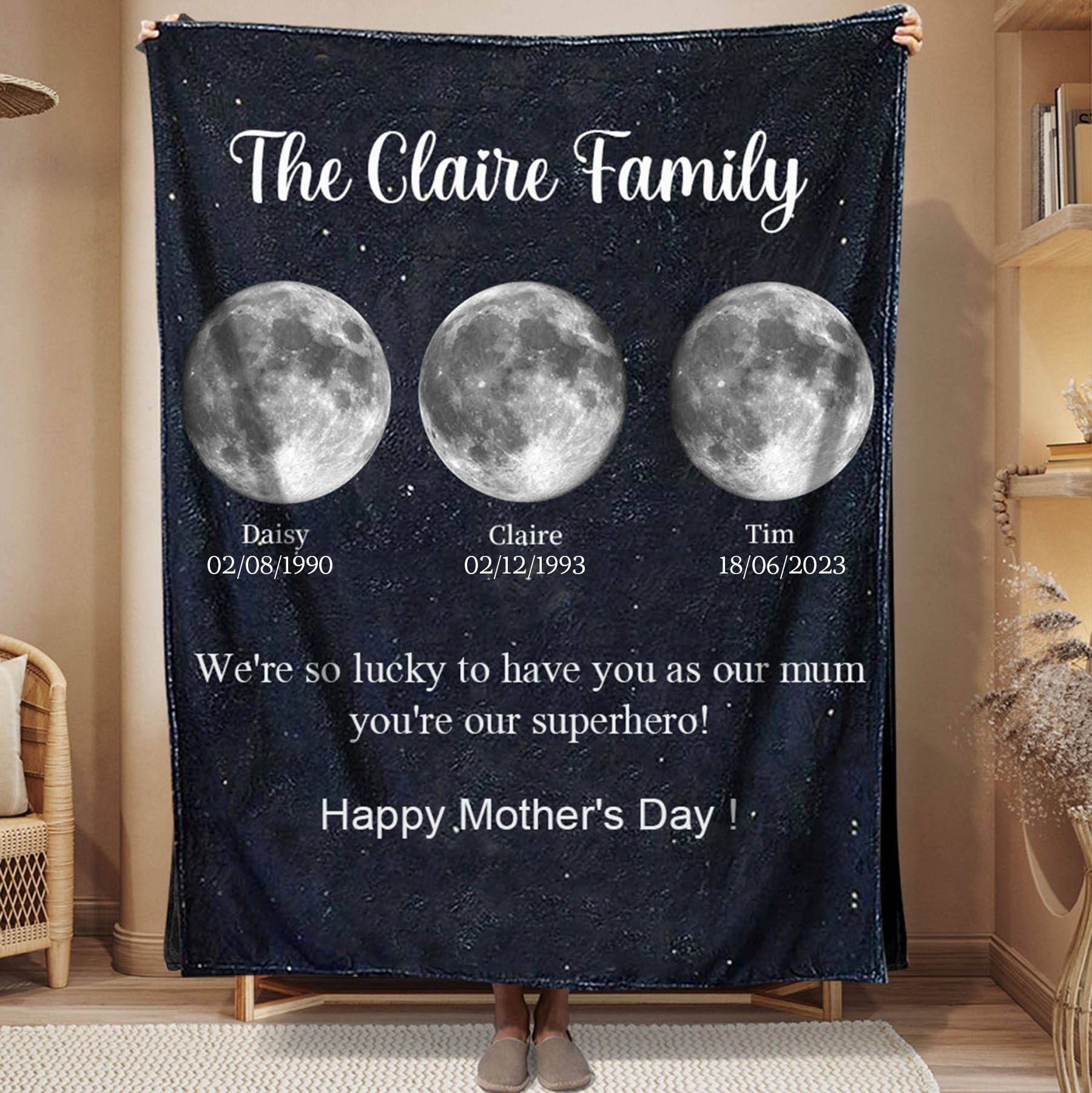 Personalised Mummy's Universe Moon Phase Blanket Mother's Day Gifts Unique Family Gift For Mum