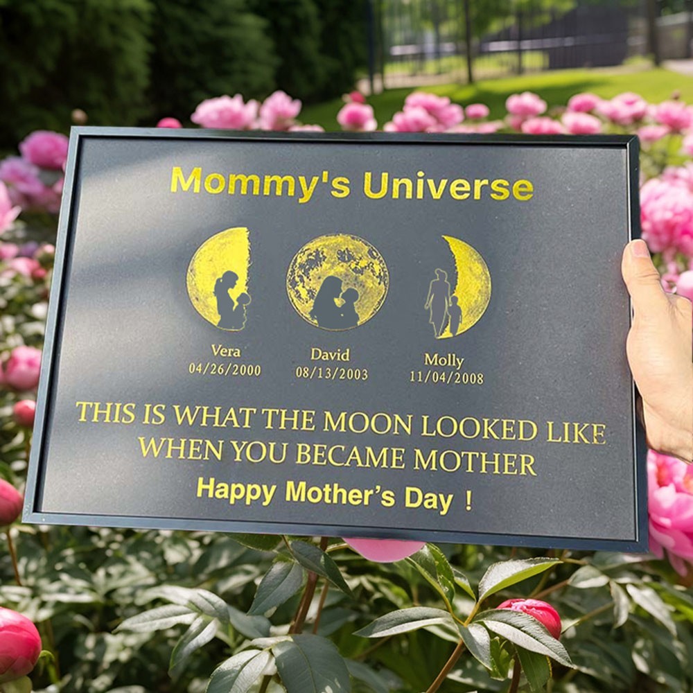 Personalised Mummy's Universe Moon Phase Print Frame with Kids Names Gift Ideas for Mum New Mum Gift Mother's Day Gifts