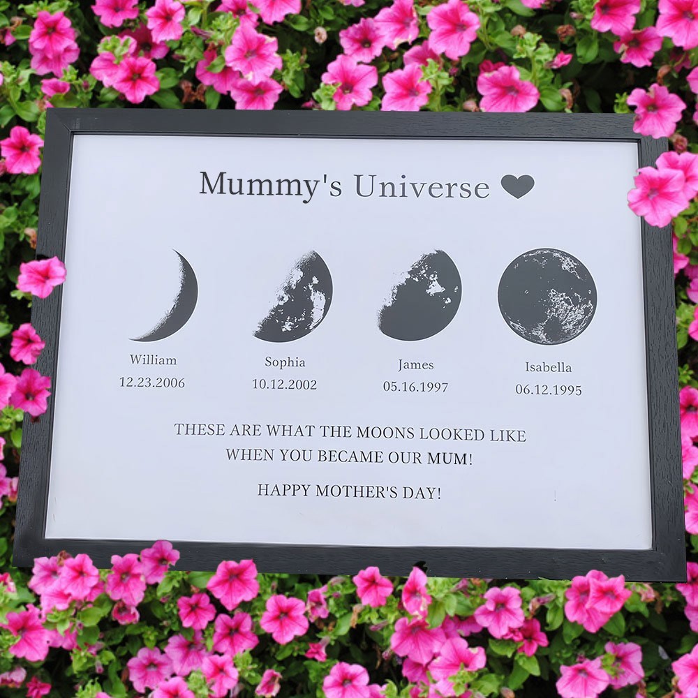 Personalised Mummy's Universe Moon Phase Print Frame with Kids Names Keepsake Gifts for Mum Grandma Mother's Day Gift Ideas