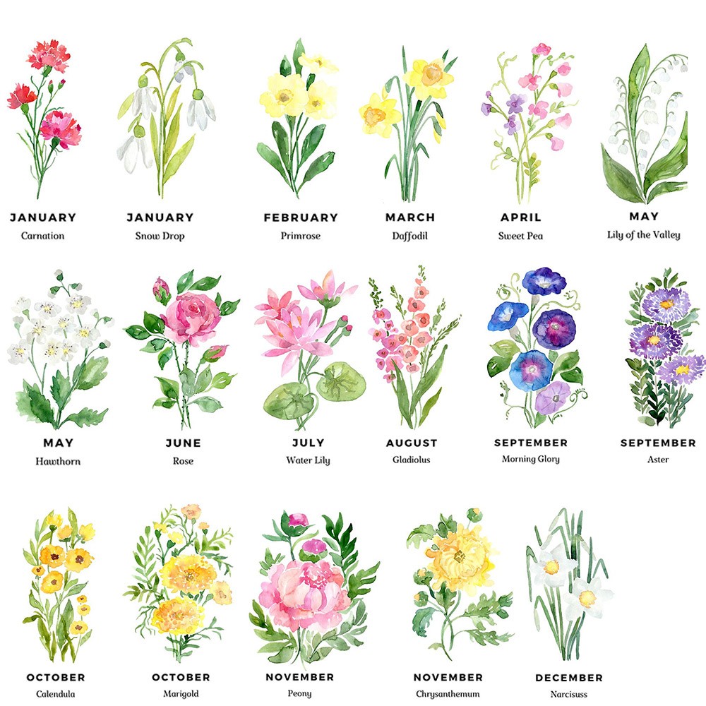 -- Select 8th Flower Type -- January-Carnation January-Snowdrop February-Primrose March-Daffodil April-Sweet Pea May-Hawthorn May-Lily of the Valley June-Rose July-Water Lily August-Gladiolus September-Morning Glory September-Aster October-Cosmos October-Marigold November-Chrysanthemum November-Peony December-Narcissus