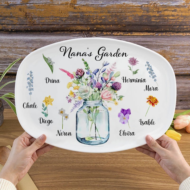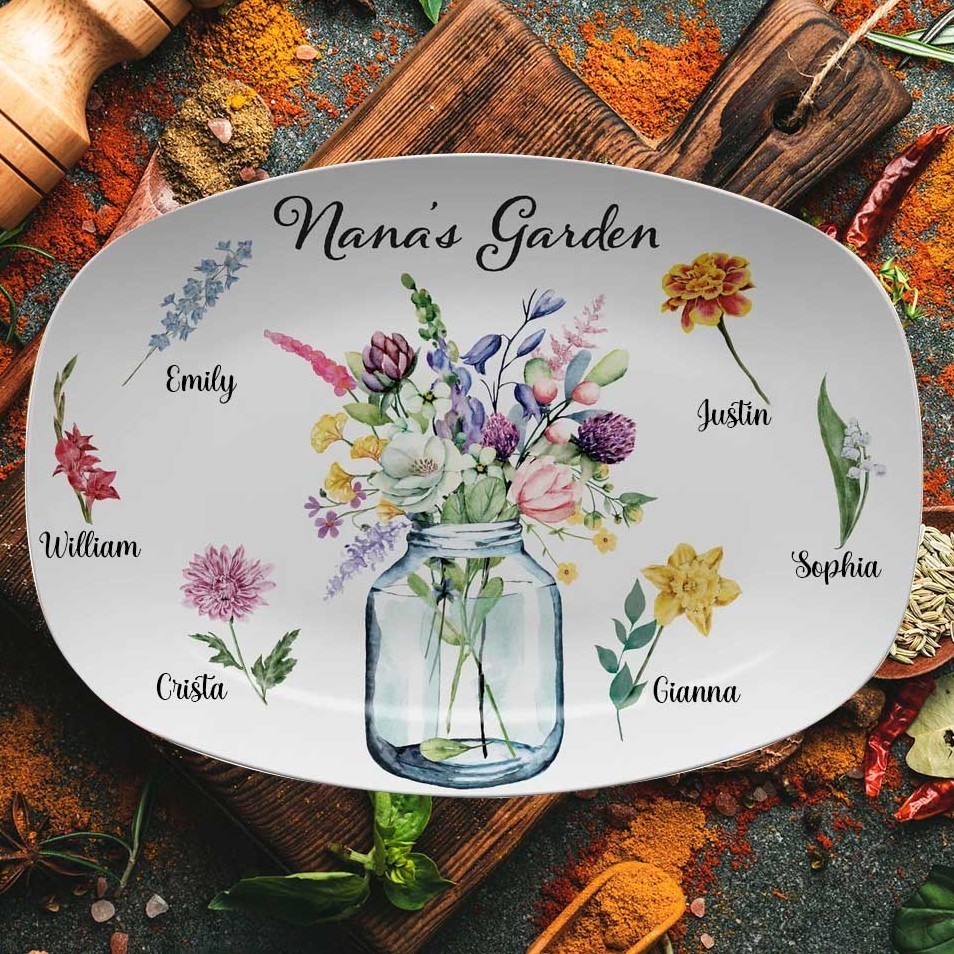 Personalised Nana's Garden Platter With Birth Month Flowers And Grandchildren Names Gift Ideas For Nana