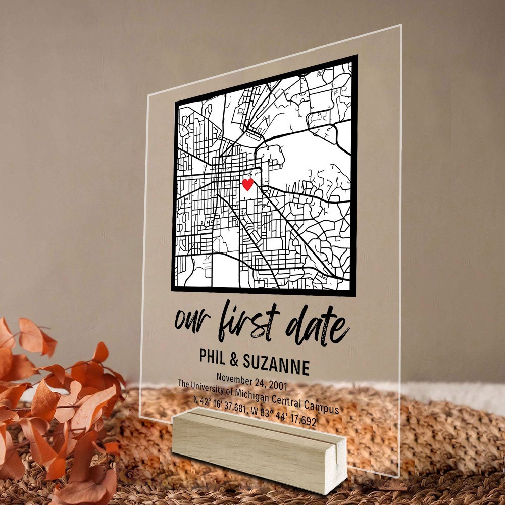 Personalised Our First Date Location Map Acrylic Plaque for Couple Anniversary Gifts for Her Him Valentine's Day Gift Ideas