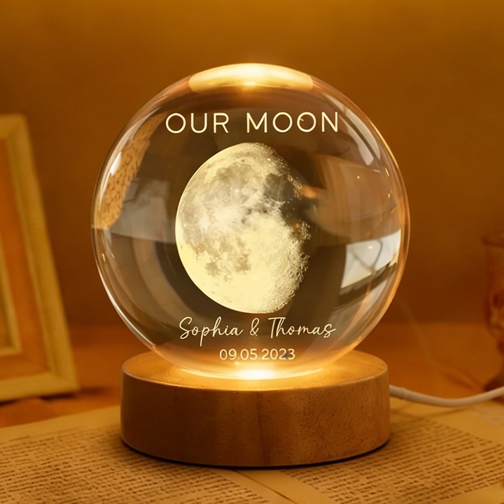 Personalised Our Moon Phase Crystal Ball LED Night Light Unique Gift for Couples Anniversary Gift Valentine's Day Gifts