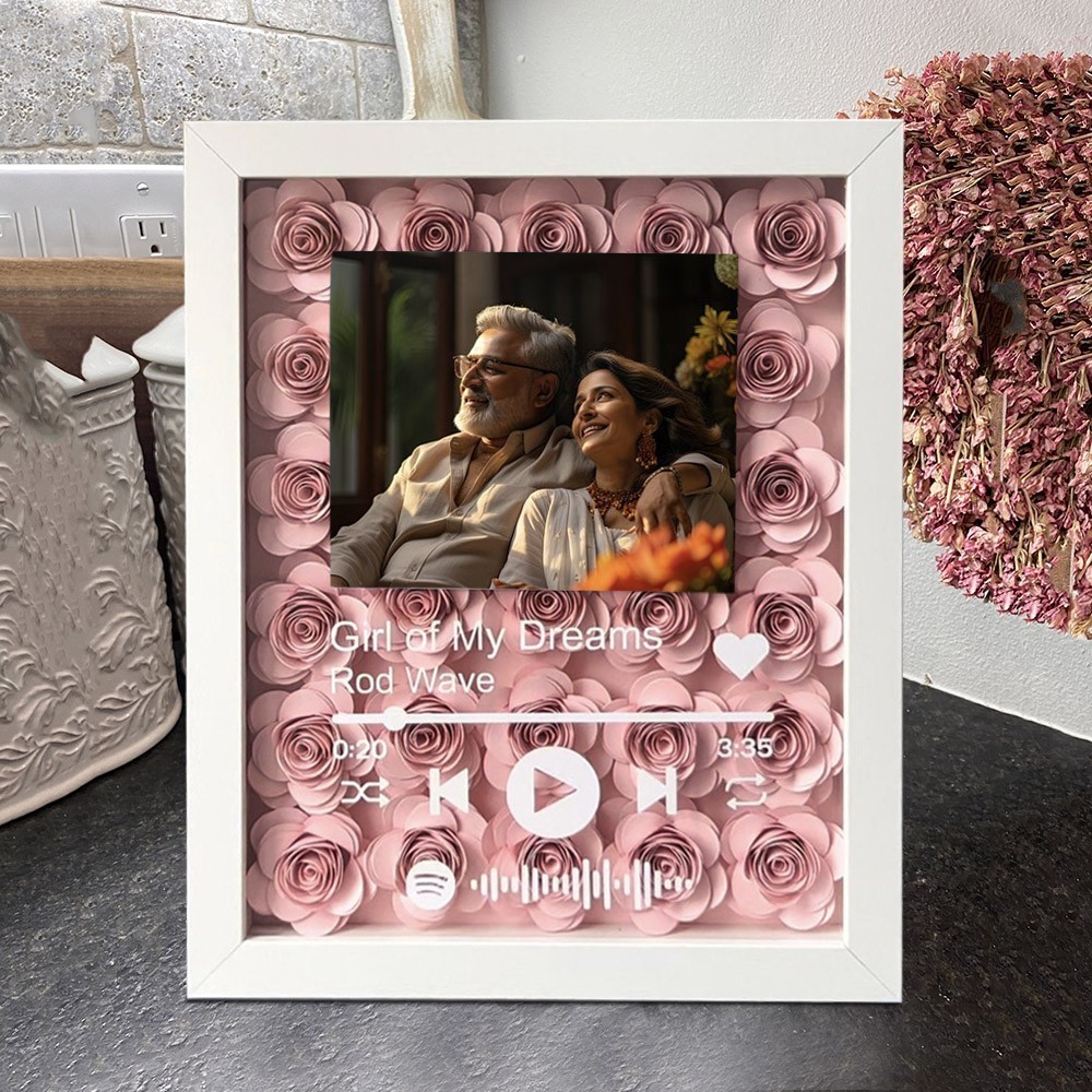 Personalised Photo Music Spotify Code Flower Shadow Box Christmas Gifts Couple Gifts For Her