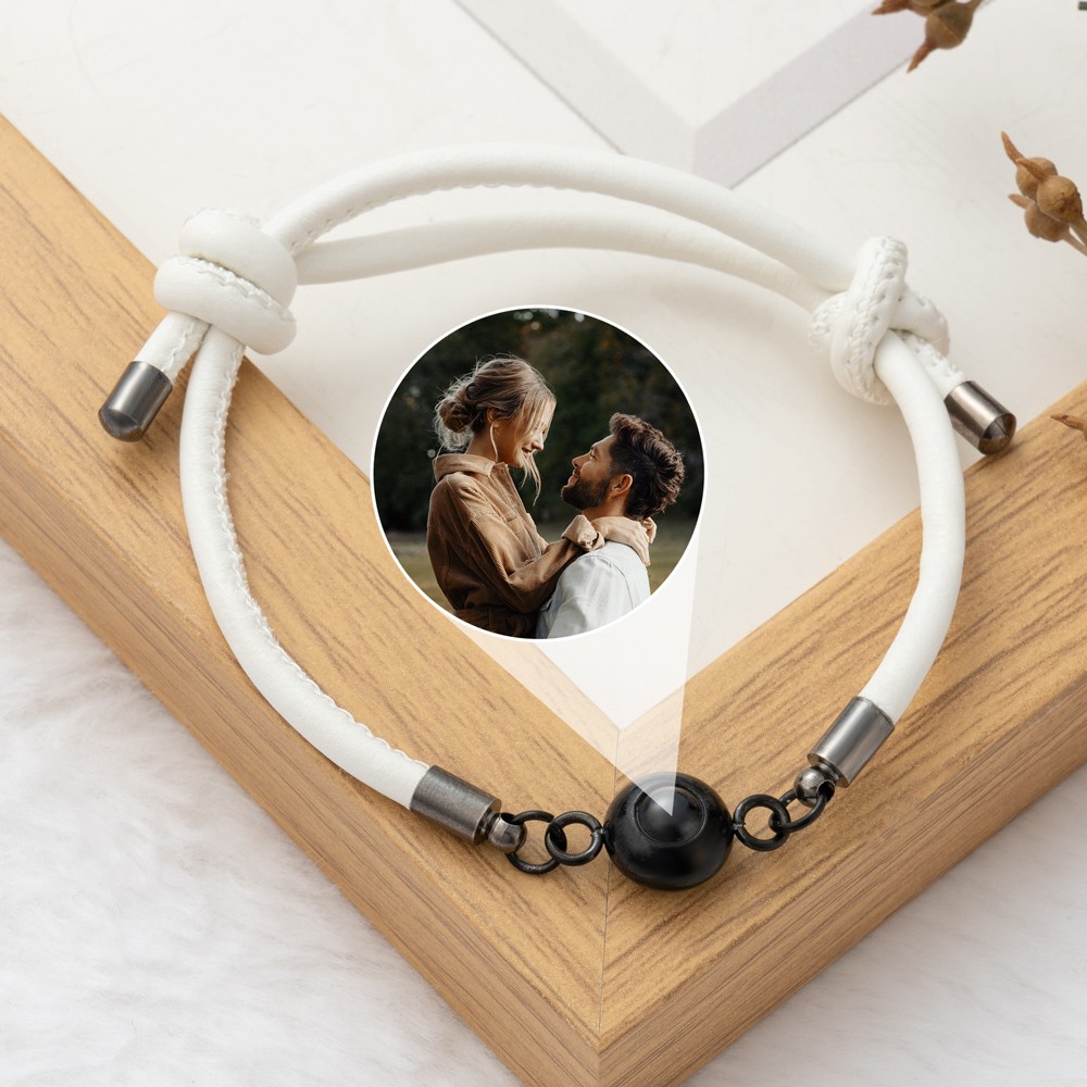 Personalised Photo Projection Leather Bead Bracelet Keepsake Gift For Girlfriend Anniversary Gift For Couple