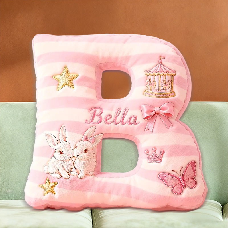 Personalised Pink Striped Bunny Star Butterfly Carousel Letter Pillow with Custom Name Christmas Gift for Girls