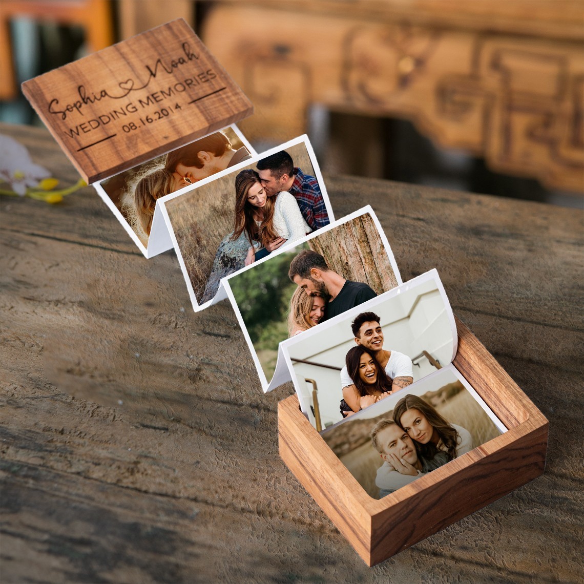 Personalised Pull Out Wooden Photo Box Memorial Gifts for Couples Wedding Anniversary Gifts Valentine's Day Gift for Her
