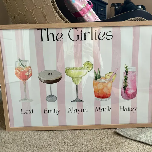 Personalised Roommates Drinks Art Print Frame with Names College Apartment Dorm Art Unique Gifts for Friends
