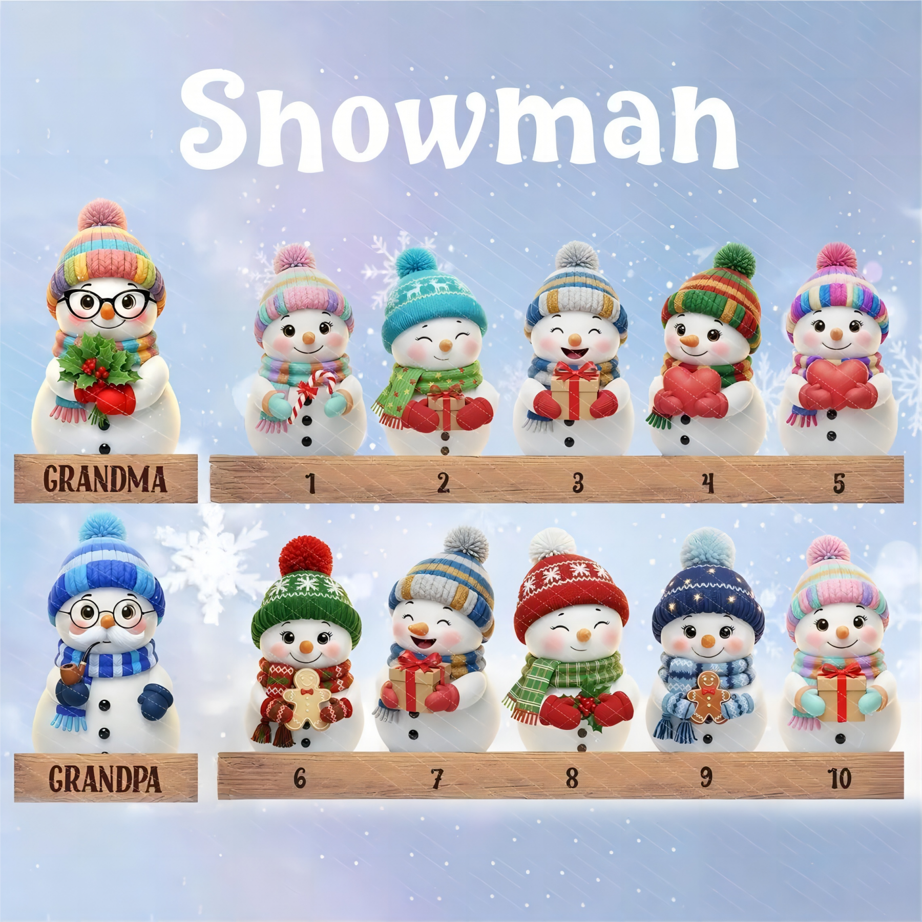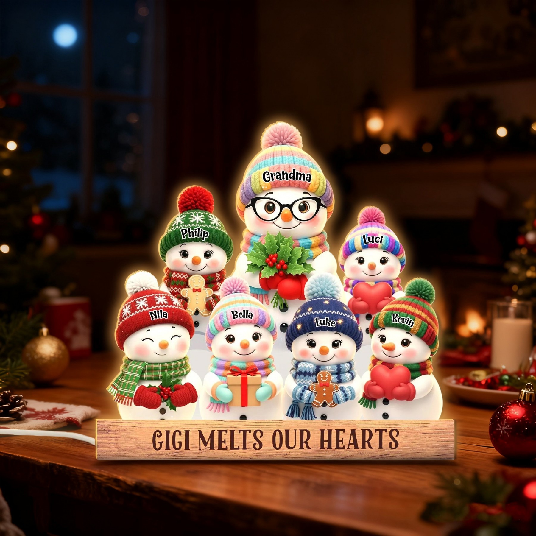 Personalised Snowman Wood Night Light with Kids Names for Grandma Gift For Grandparents Family Christmas Gift