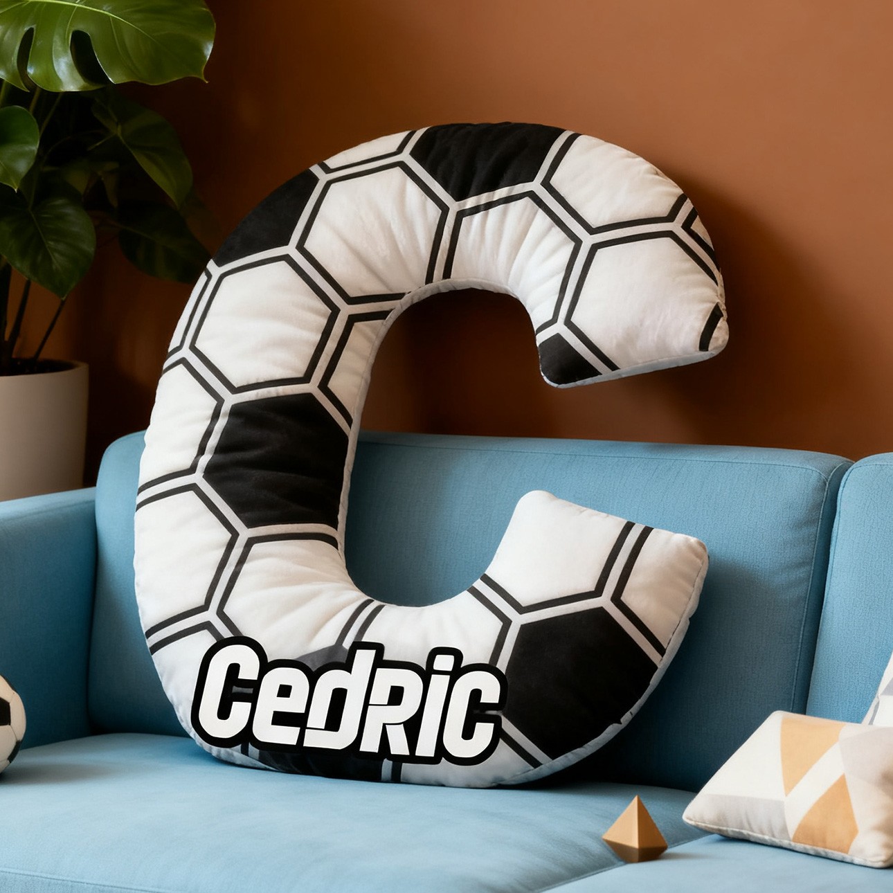Personalised Soccer Themed Letter Shaped Pillow with Custom Name Football Fans Gifts Christmas Gift for Soccer Lover