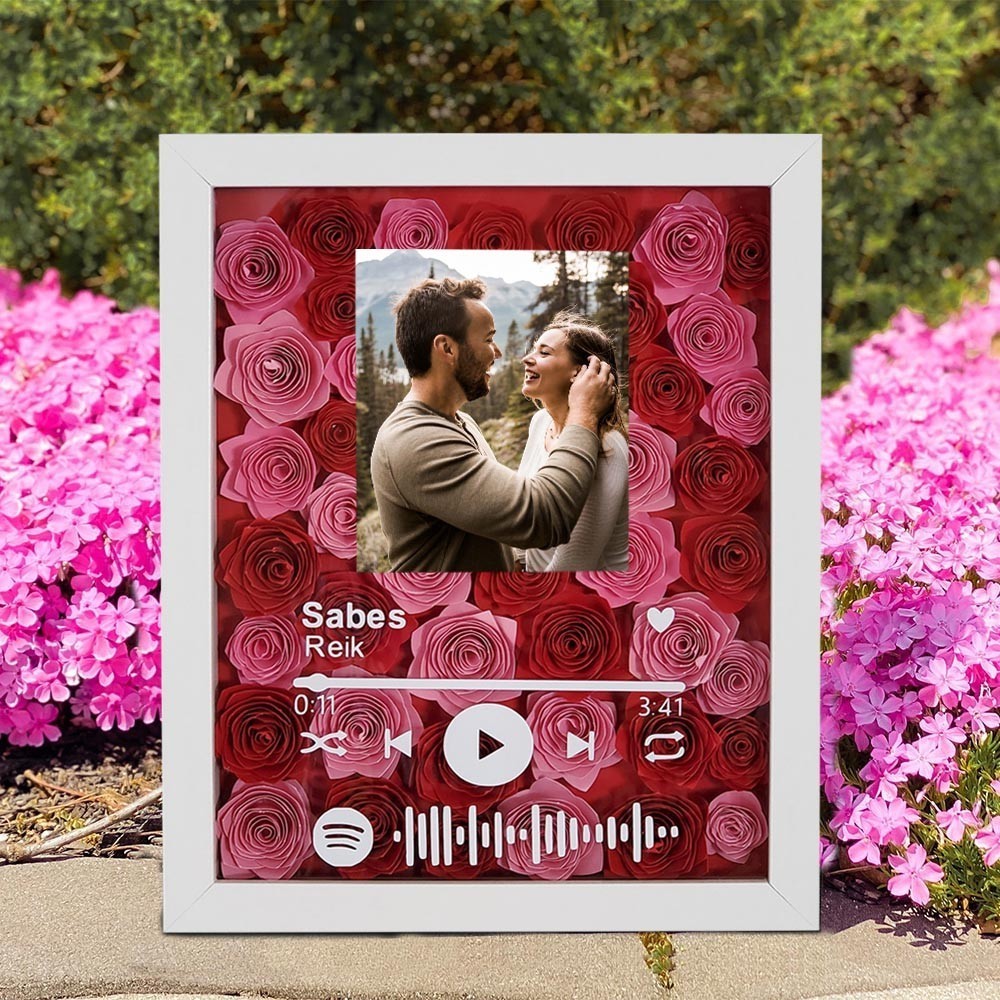 Personalised Spotify Code Flower Shadow Box With Photo Couple Gifts For Her Unique Christmas Gifts
