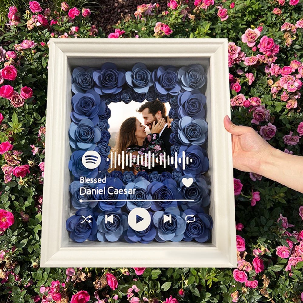 Personalised Spotify Flower Shadow Box with Photo Unique Gift for Couples Valentine's Day Gift for Girlfriend Wife