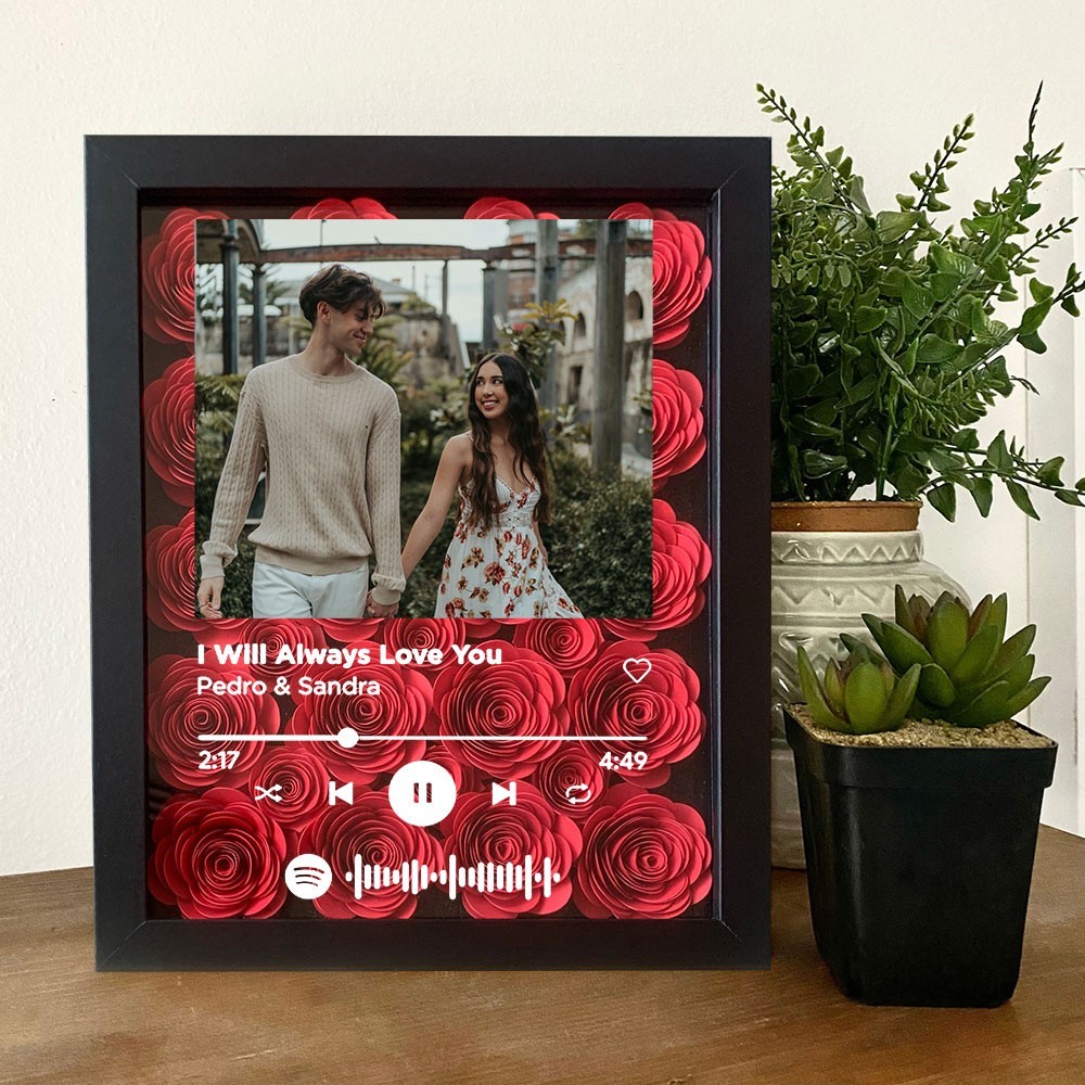 Personalised Spotify Music Flower Shadow Box with Photo for Couples Valentine's Day Gifts Anniversary Gift for Wife