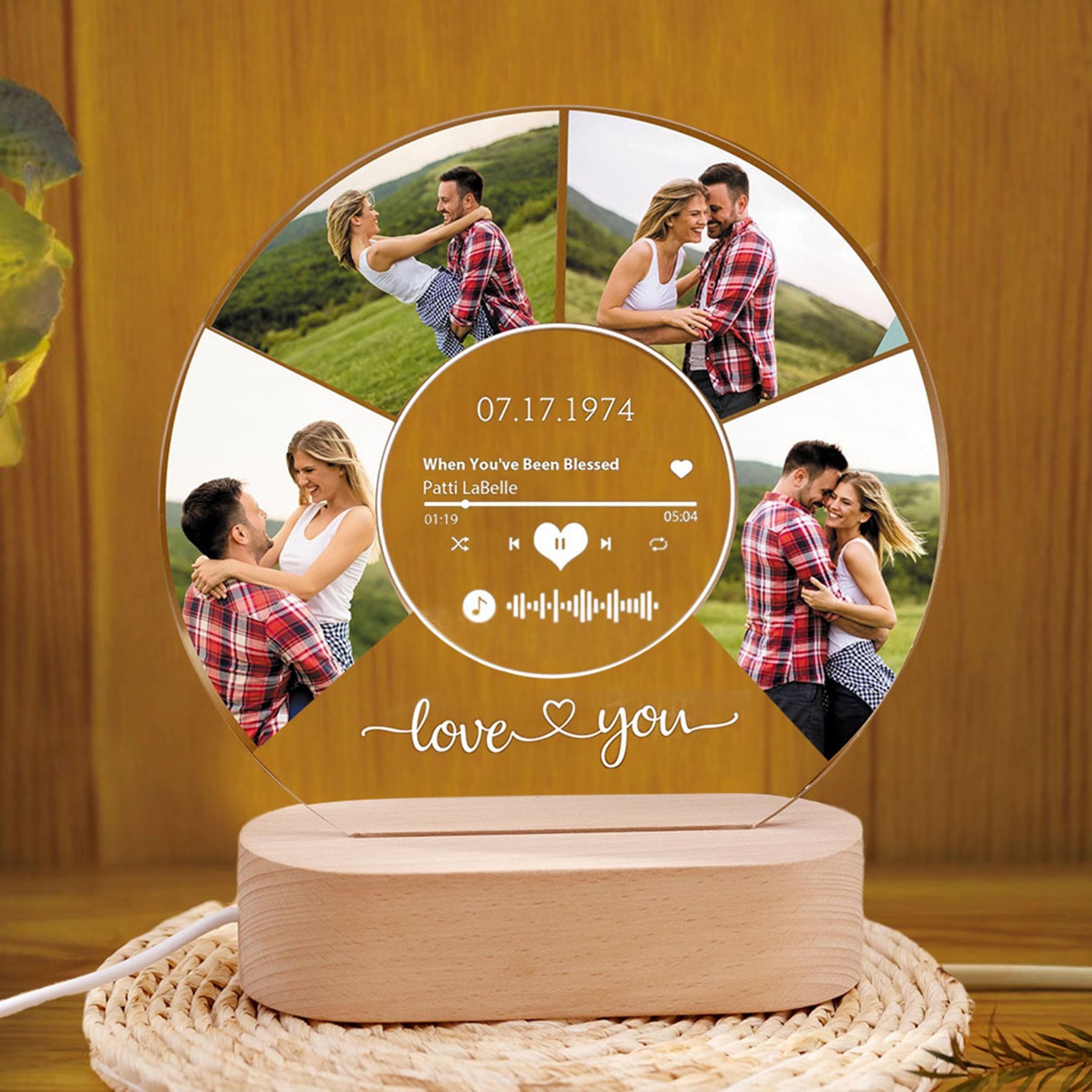 Personalised Spotify Photo Music Plaque Song Acrylic Night Light Wedding Anniversary Gift Valentine's Day Gift for Couples