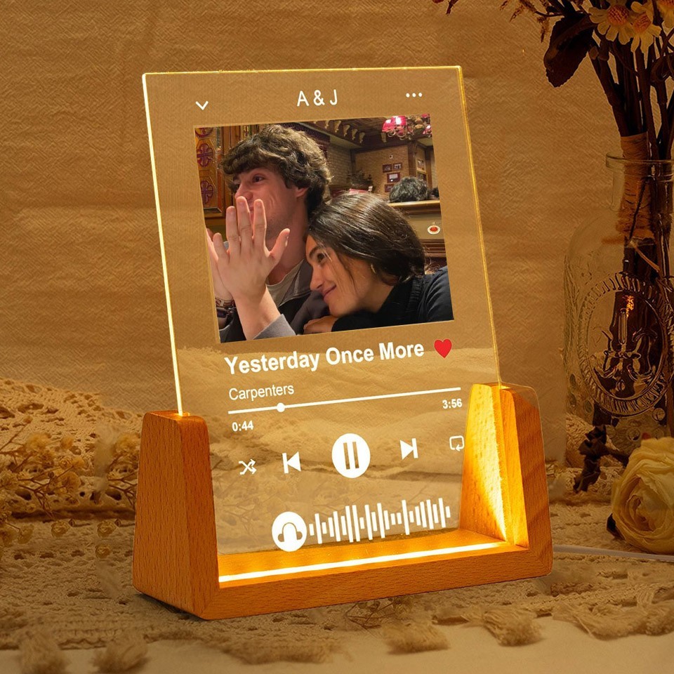Personalised Spotify Song Plaque Music Acrylic Photo Night Light Valentine's Day Gift for Couples Anniversary GIft Ideas