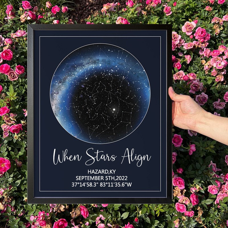 Personalised Star Map Frame Sign By Date and Location Anniversary Gifts for Wife Husband Christmas Gift Ideas