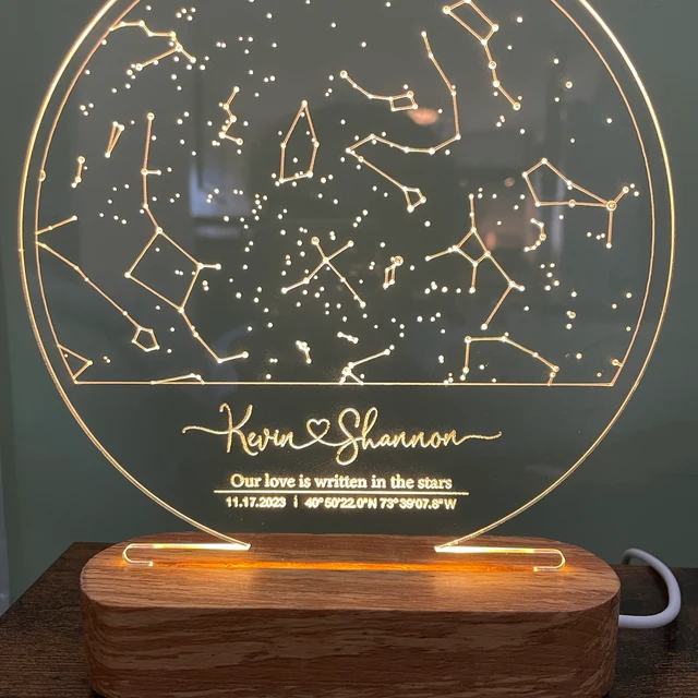 Personalised Star Map Night Light Unique Anniversary Gift for Her Stars Chart Gift for Couples Christmas Gift