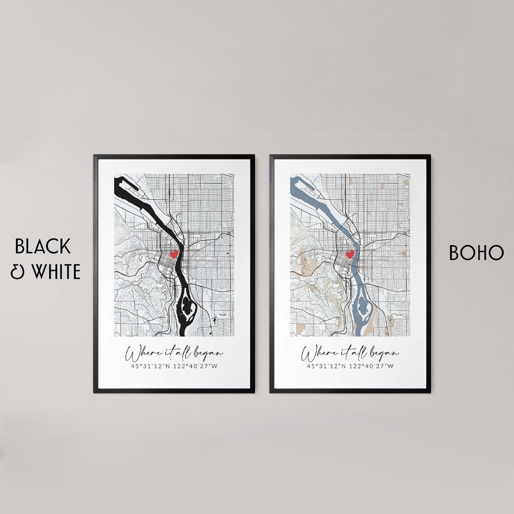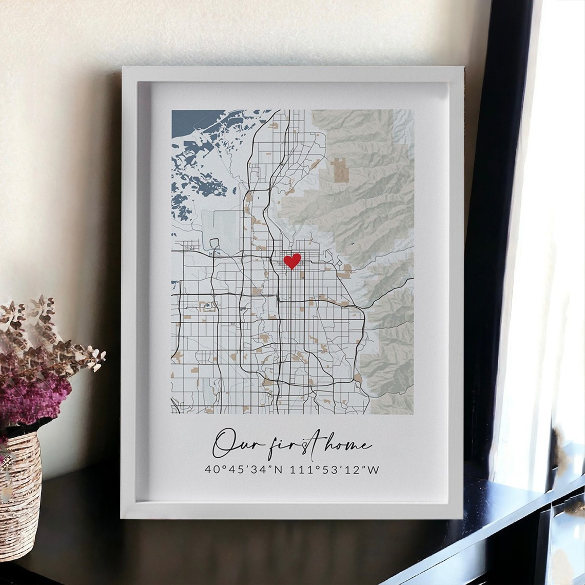 Personalised Street Map Print Frame Unique Gift for Couples Anniversary Gift for Her Him