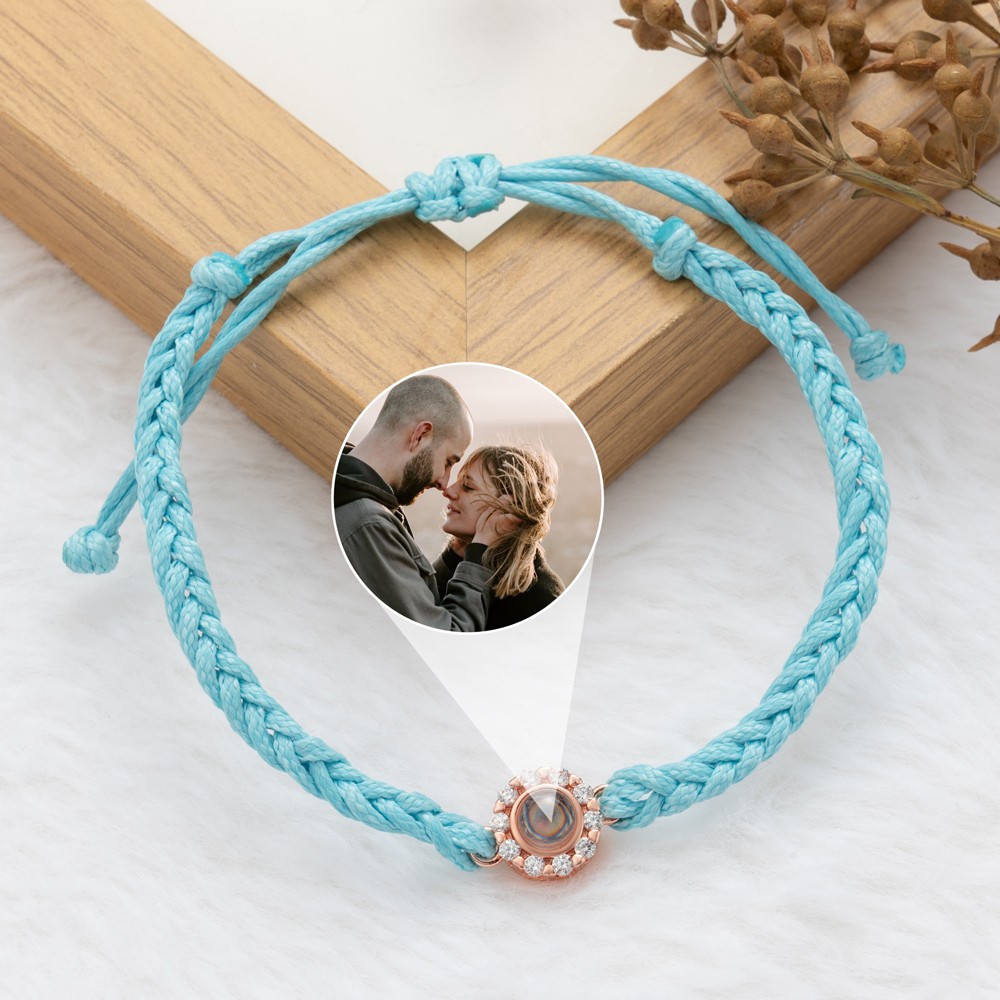 Personalised Sunflower Photo Projection Braided Bracelet Unique Wedding Gift For Couple Anniversary Gift For Her