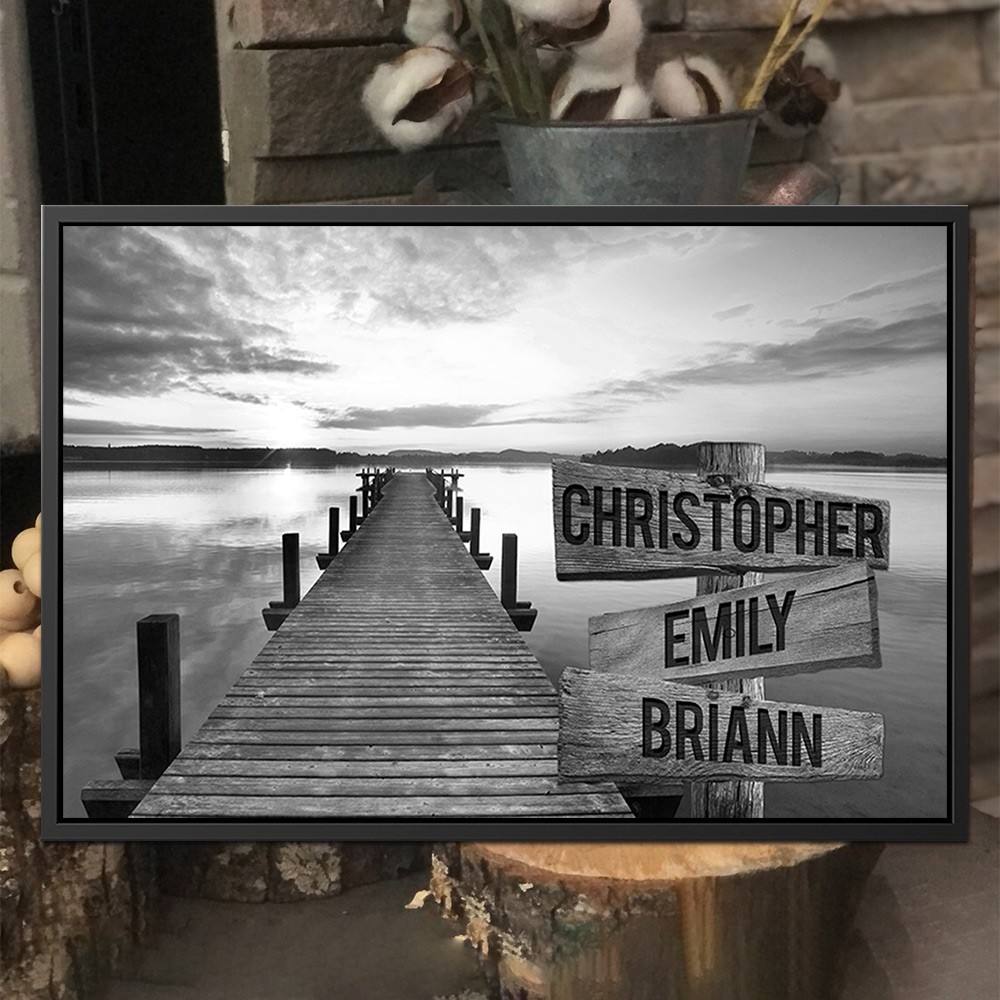 Personalised Sunset Lake Dock Family Street Frame Sign With Multi-Names Family Gift Ideas