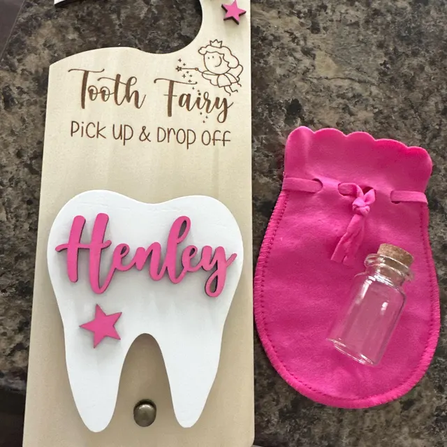 Personalised Tooth Fairy Door Hanger with Pouch Keepsake Gift for Kids Baby Shower Gift