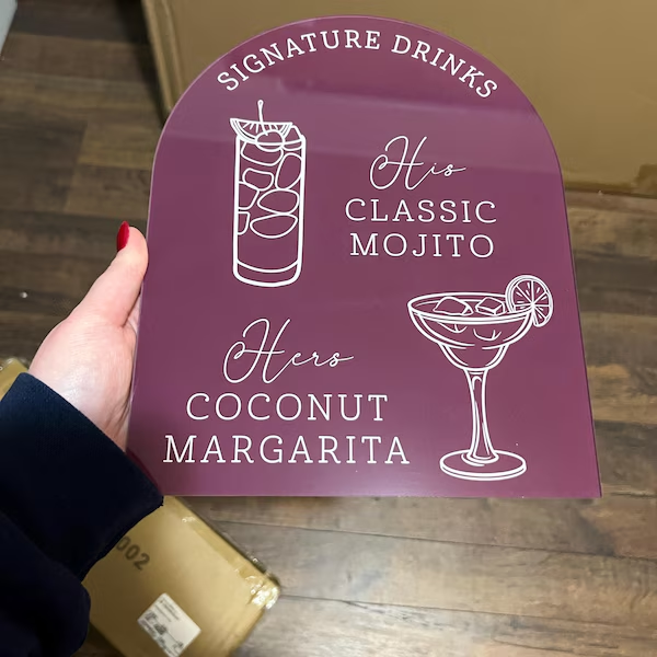Personalised Wedding Signature Drinks Menu Sign Wedding Table Bar Menu Signs Acrylic Wedding Bar Menu