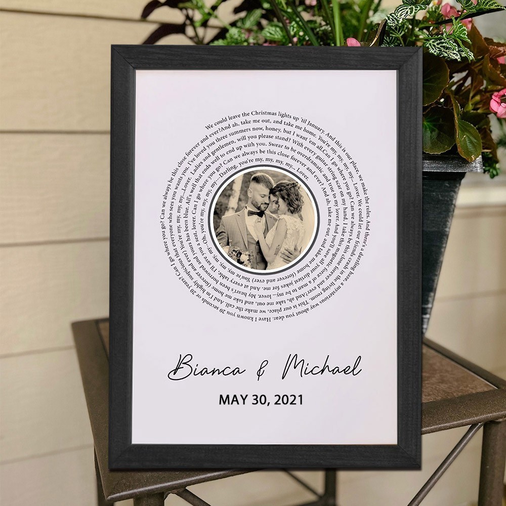 Personalised Wedding Song Lyrics Print Frame Keepsake Gifts for Couples 1st Wedding Anniversary Gift