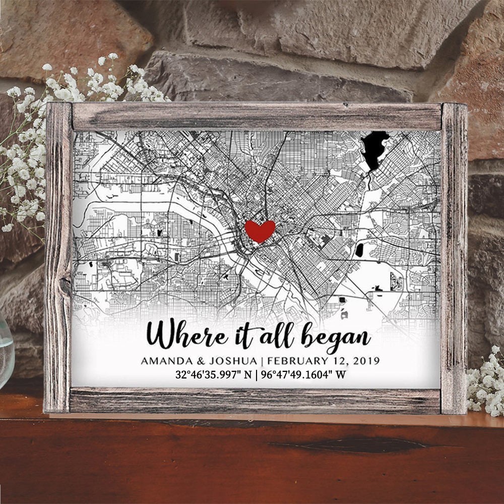 Personalised Where It All Began Location Map Print Frame Engagement Gifts for Couple Anniversary Gift Valentine's Day Gifts