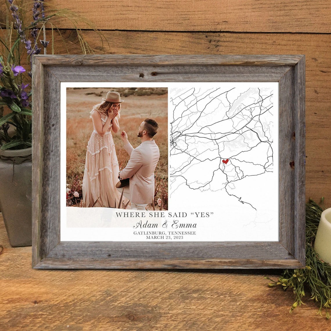 Personalised Where She Said Yes Location Map with Photo Engagement Gift for Couple Anniversary Gift Valentine's Day Gifts