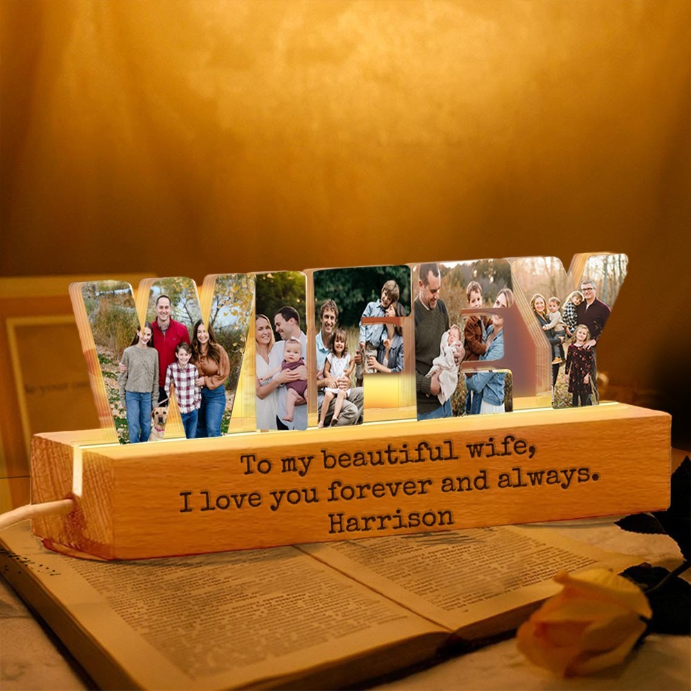 Personalised Wifey Photo Collage Night Light Wedding Anniversary Gift for Wife Valentine's Day Gifts for Couple