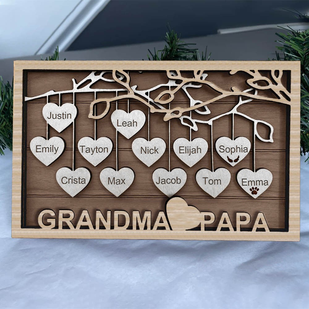 Personalised Wood Family Tree Sign with Names Gifts for Grandma Mum Mother's Day Gift Ideas