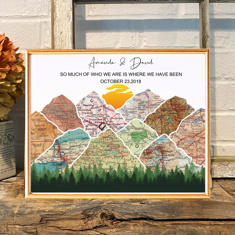 Personalised Wood Mountain Adventure Travel Map 5th Anniversary Gifts for Wife Husband Christmas Gift