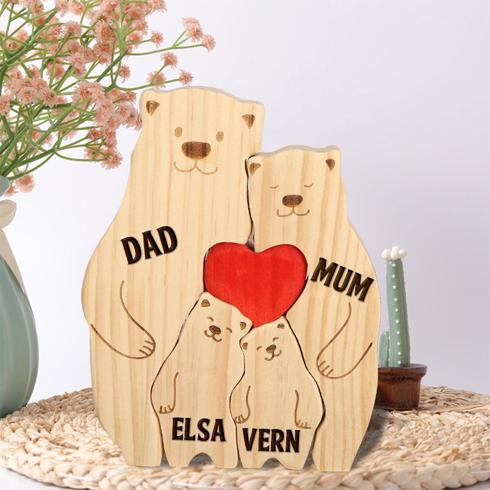 Personalised Wooden Bear Family Puzzle with Engraved Names