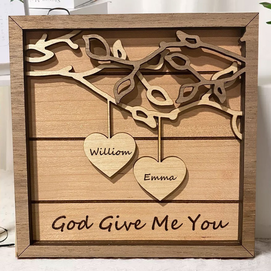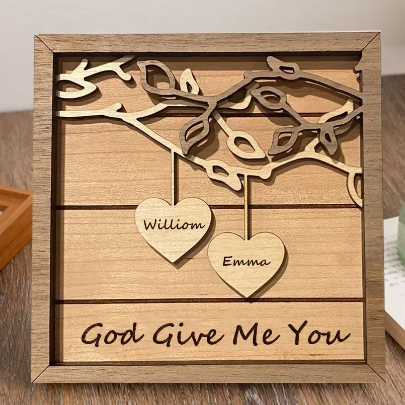Personalised Wooden Family Tree Sign with Engraved Names for Soulmate Gifts for Couple Anniversary Gift for Wife Husband Christmas Gift