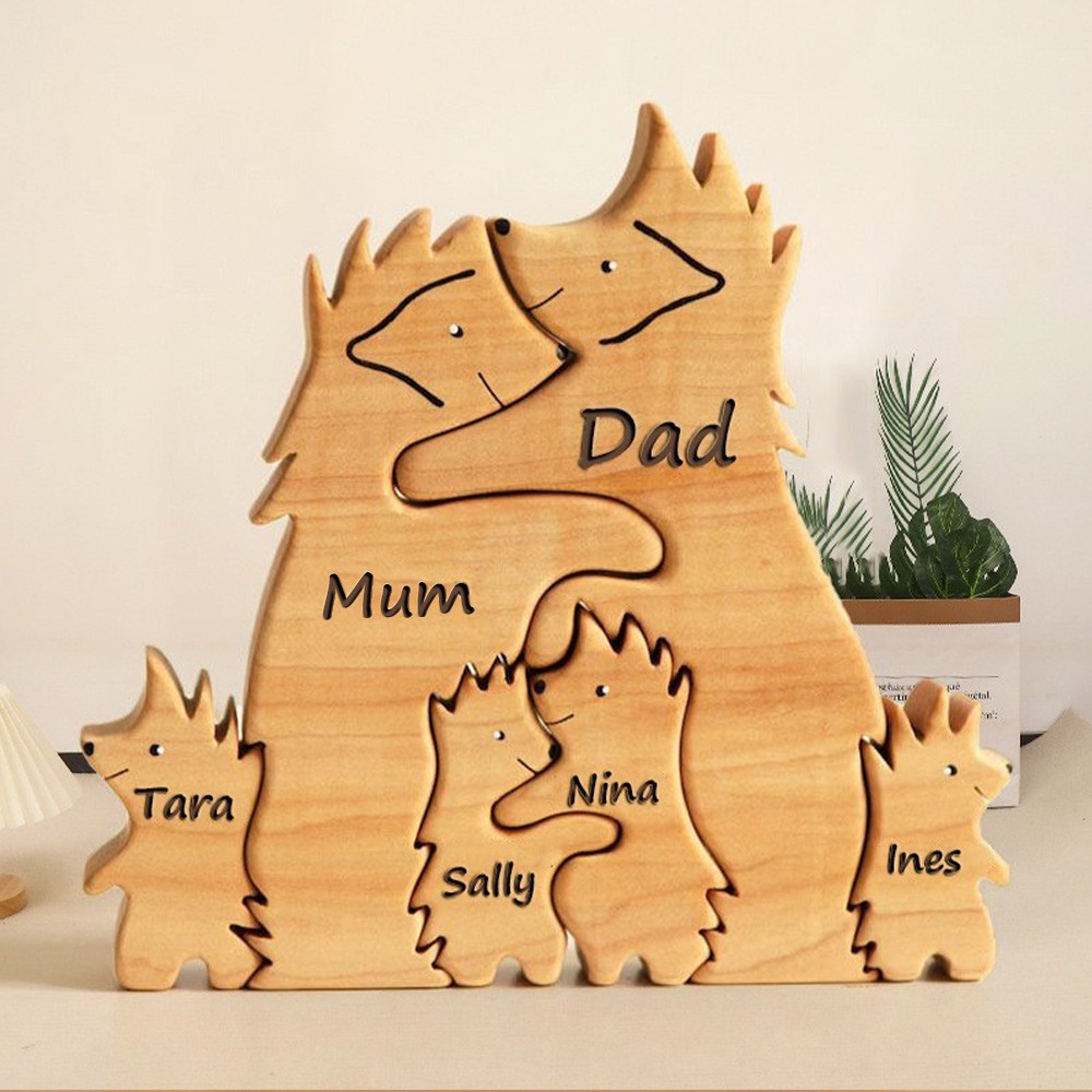 Personalised Wooden Hedgehog Family Puzzle with Names
