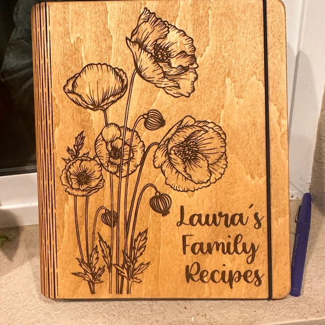 Personalised Wooden Recipe Book Blank Binder Custom Engraved Journal Cookbook for Mum Grandma Christmas Gift