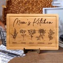 Personalised Mum's Kitchen Birth Flower Cutting Board with Engraved Names Family Gifts for Mum Grandma