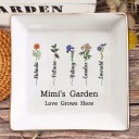 Personalised Mimi's Garden Birth Flower Jewellery Dish with Kids Names Christmas Gift for Mum Grandma