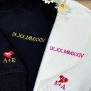 Custom Embroidered Roman Numeral Couple Matching Sweatshirt with Heart Initials on Sleeve 1st Anniversary Gifts for Her Him