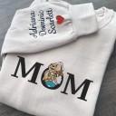 Mum Embroidered Photo Portrait Sweatshirt with Kids Names on Sleeve Custom Gifts for Mum New Mum Gift Mother's Day Gift