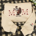 Custom Mum Floral Letter Embroidered Photo Portrait Sweatshirt with Kids Names on Sleeve Gifts for Mum Mother's Day Gift