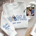 Mama Embroidered Photo Portrait Sweatshirt with Kids Names on Sleeve Custom Gifts for Mum Mother's Day Gift Ideas