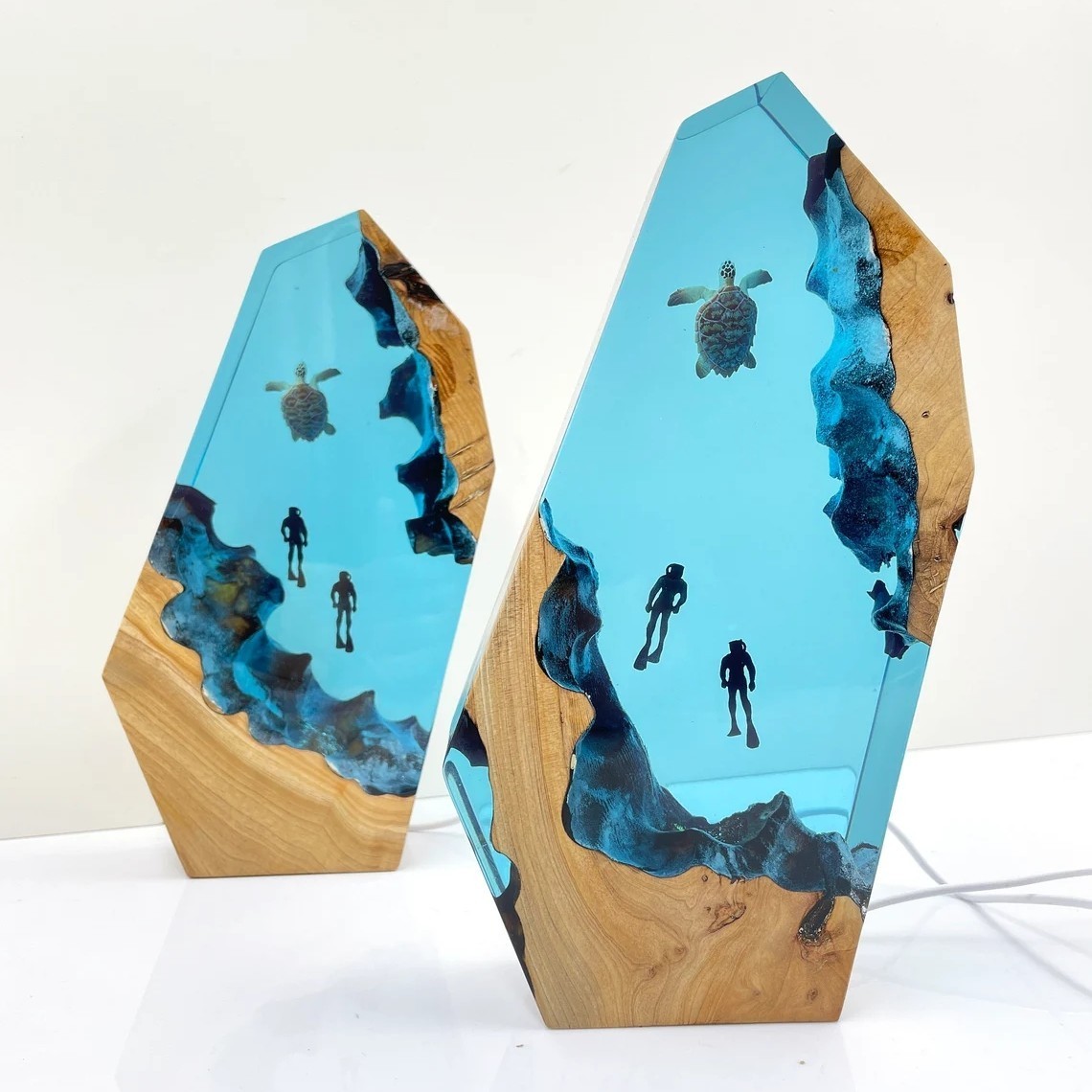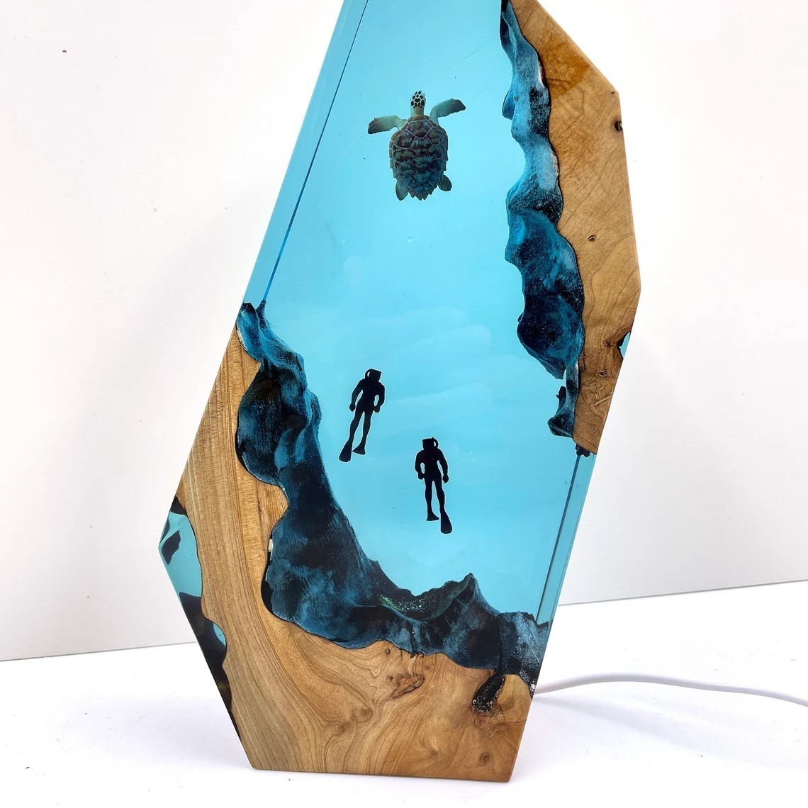 Sea Turtle Couple Diver Night Light Resin Wood Lamp Unique Birthday Gift Christmas Gift Ideas