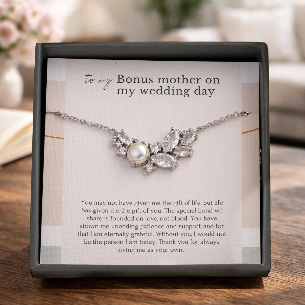 Stepmother Pearl Necklace – Wedding Day Gift from Bride, Bonus Mum Jewelry, Bridal Shower Gift