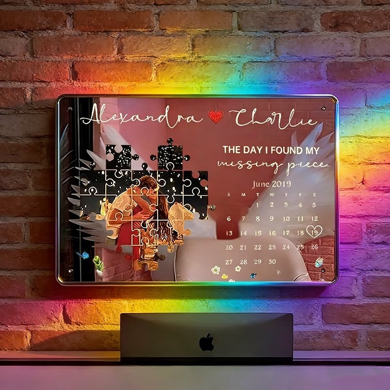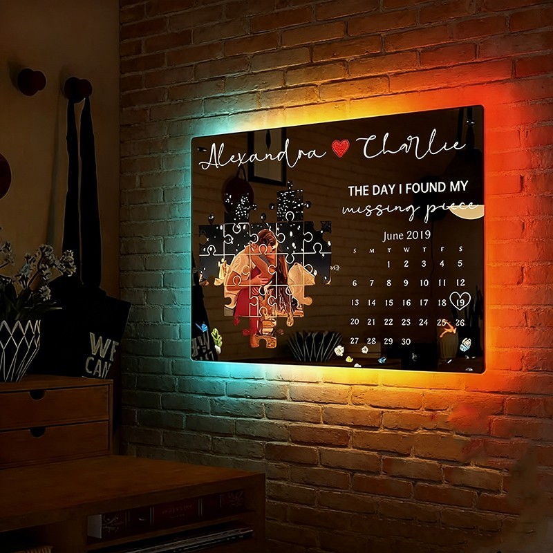 The Day I Found My Missing Piece Personalised Photo Calendar Mirror Night Light for Couples Gifts for Anniversary Valentine's Day