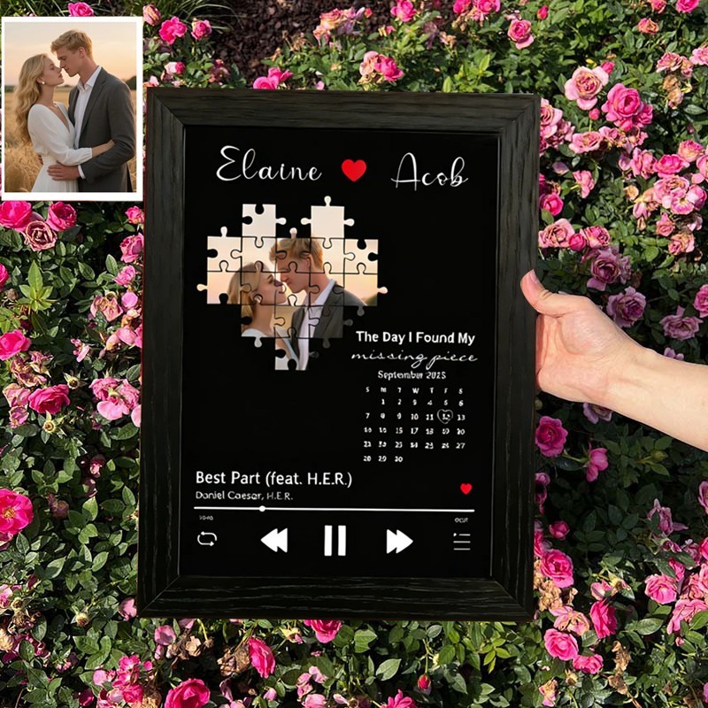 The Day I Found My Missing Piece Personalised Photo Calendar Music Frame for Couples Anniversary Gift Valentine's Day Gift Ideas