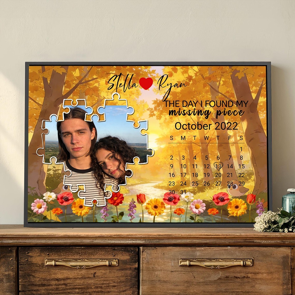 The Day I Found My Missing Piece Print Frame Gift for Anniversary Valentine's Day Personalised Love Gifts for Couple