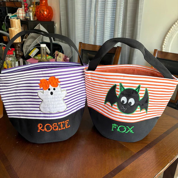 Trick or Treat Bucket with Name Personalised Halloween Candy Bag for Kids Halloween Gifts
