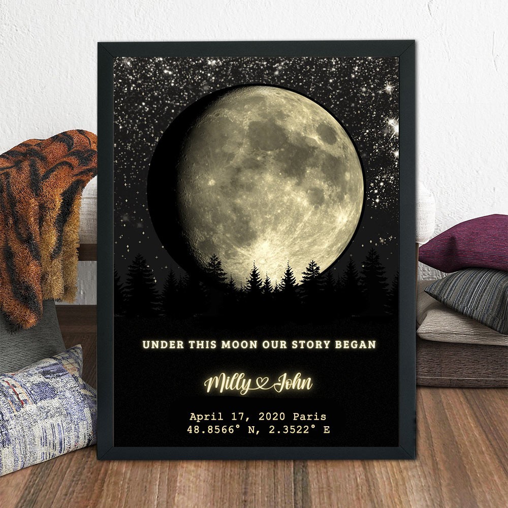 Under This Moon Our Story Began Custom Moon Phase Print Frame Sign Unique Anniversary Gifts for Her Him Valentine's Day Gift for Couples Birthday Gift